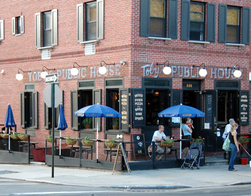 Down in South Park Slope, just off the N train, is a gem of pizza places. Toby’s Public House manages to fit the best of a pub, a sports bar, and small Italian restaurant all into one place. When I first moved to the Slope at the beginning of the school year, a neighbor told me I had to go for the great beer selection. Upon arrival, I found a beer list that, while not vast, is varied and regularly updated and includes some uncommon brews.