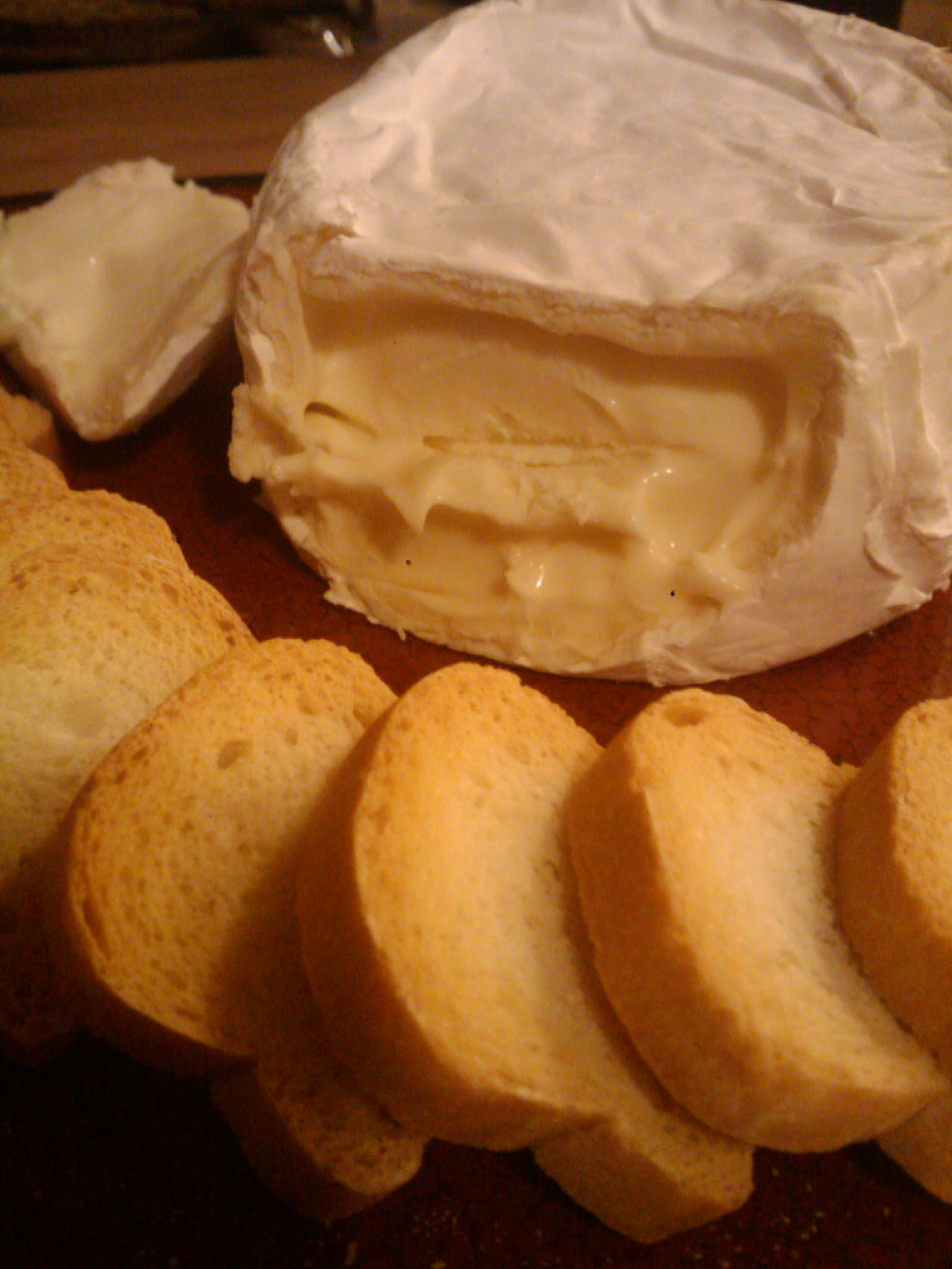 The flavor is rich and creamy–much more so than a brie.  There is background flavor of goat cheese in there somewhere, but I don’t think that I would have been able to identify it if I didn’t have advanced notice of its addition.  While delicious, the cheese is heavy and hard to eat much of at once, perhaps making it an ideal addition to a cheese plate for several people.