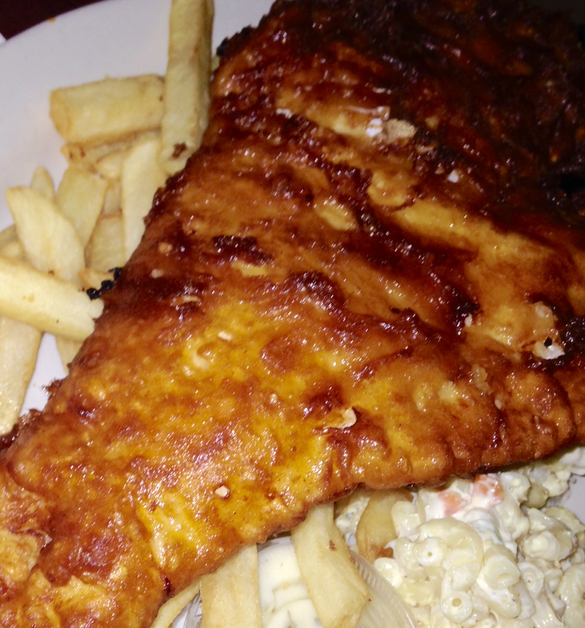 The fried fish was unambiguously the best fried fish I’ve ever had. A beer batter formed a hard, but not too hard, shell outside of my aquatic friend. The crust had a rich taste. The crunchy texture was almost that of a super sized onion ring. And the white fish hiding inside was perfectly flaky and presented the right level of fish flavor. No fish and chips of my past can compare.