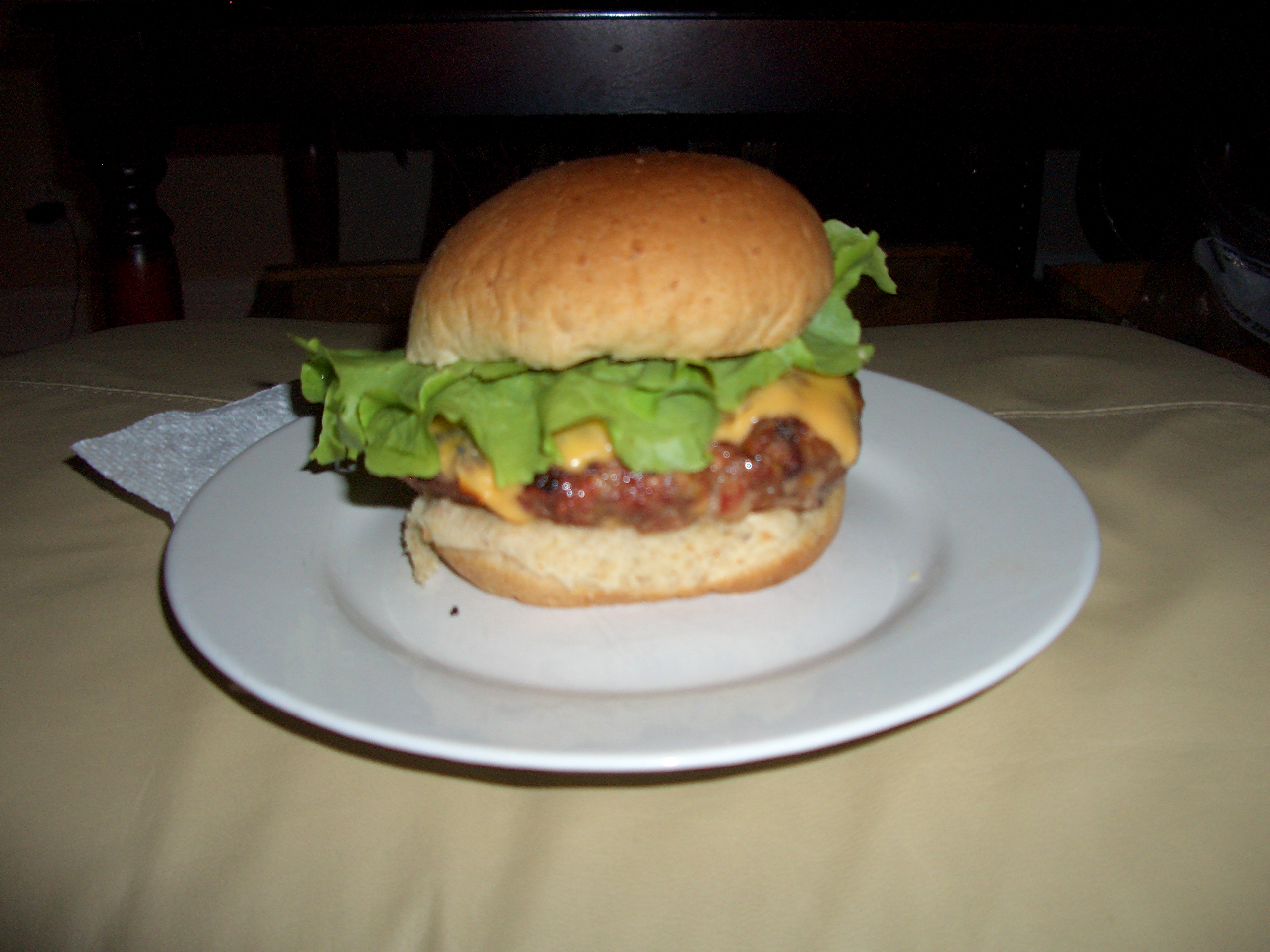 For this weekend’s NFL opener it was time to fire up the grill for some burgers.  Lately Nick has been mixing some BBQ sauce (among other undisclosed ingredients) into the burger meat before forming the patties.  The result is a flavorful moist burger with little caramelization.  But there is a problem:  the patty become too moist and falls apart easily during grilling.