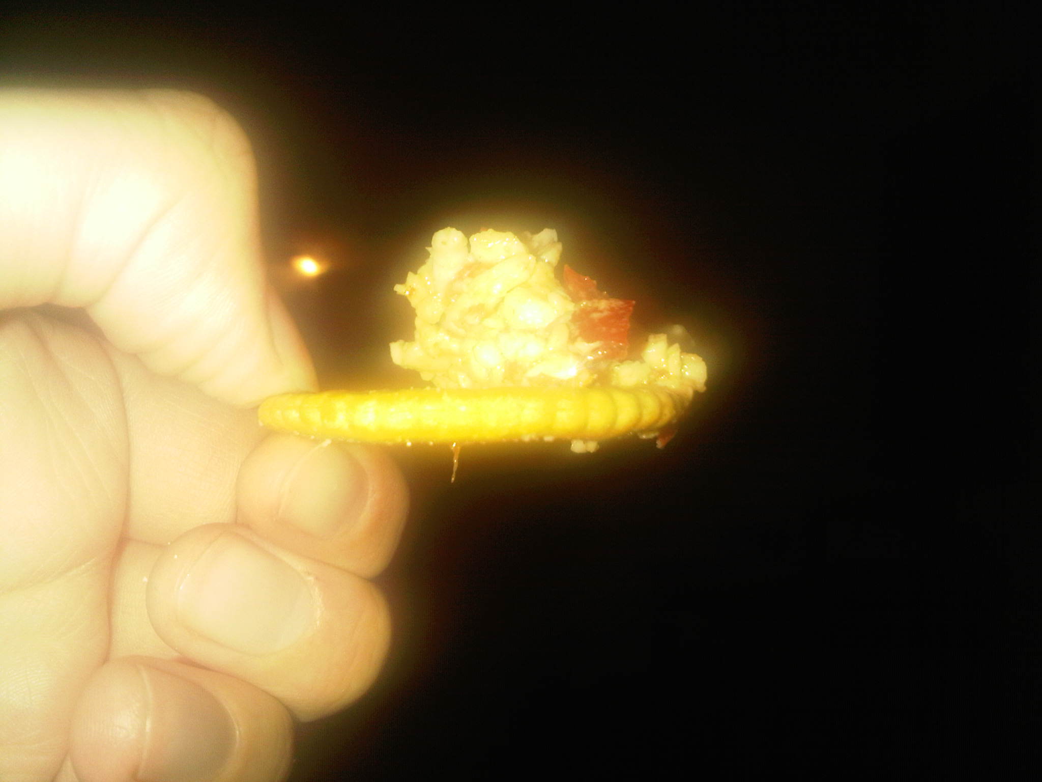 The mixture Iggy brought back was chipotle pimento cheese,  with a little bit of heat added to basic ingredient outline and was on the coarse side of the mixing style.  Keeping it simple, and classy, we ate this new fair onto some Ritz crackers.  And the Ritz cracker were prefect–their crispy butteriness amplified decadent fat going on in the cheese (we also tried it on some of fancy, and neutral,  little cheese toasts to get a baseline).