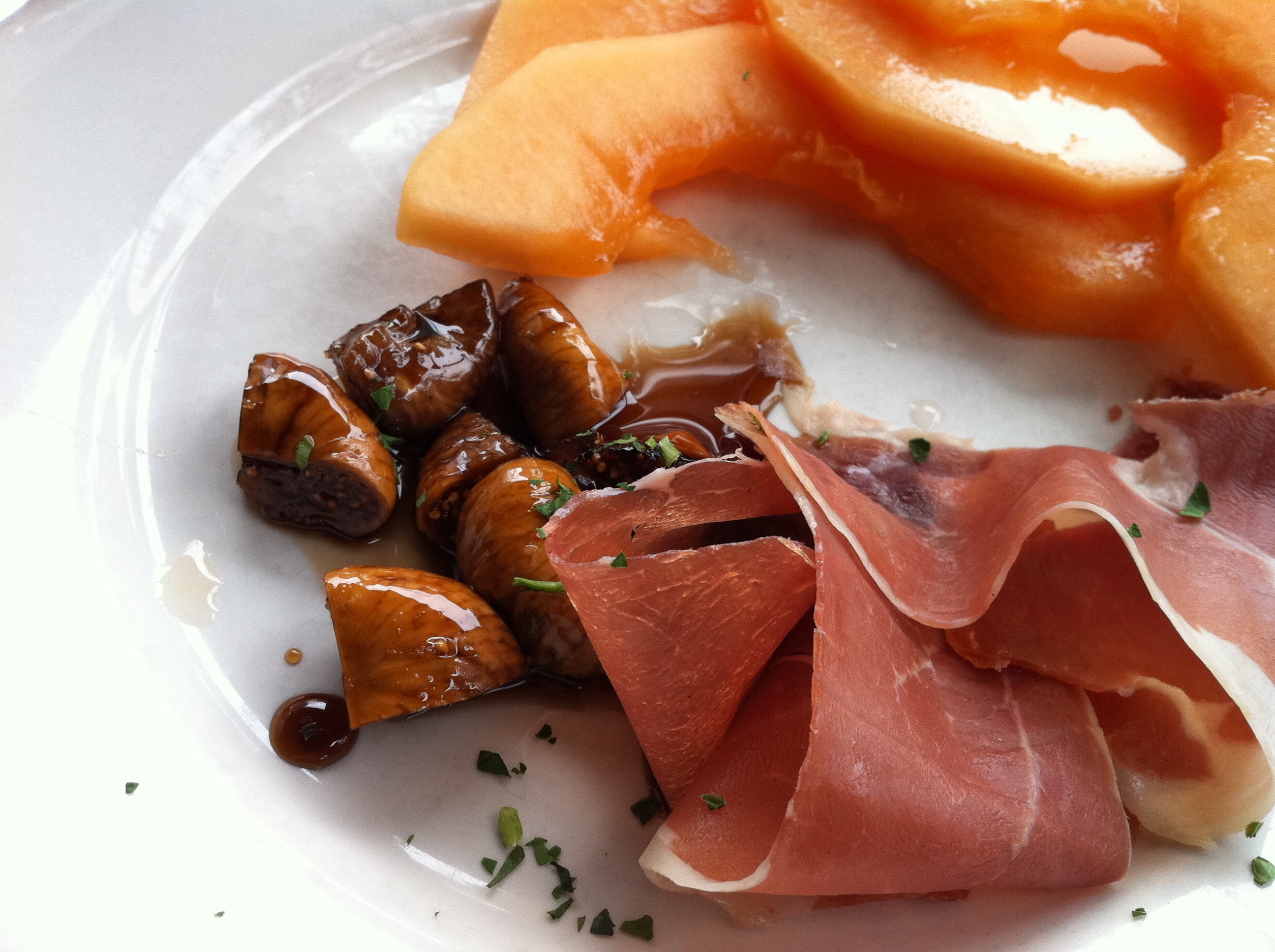 Sette’s brunch offers an antipasti and an entree, in addition to the unlimited drinks and the raisin walnut foccacia bread. Both Stu and Meg ordered the ricotta fritters with fruit puree which were a complete home run. Fried and the size of doughnut holes these little gems were moist, not overly sweet, and perfect when dipped into the fruit puree. I ordered the seasonal melon, balsamic figs, and prosciutto. I have fond memories of prosciutto melone from a past trip to Italy, so I may have had the bar set a little high, but I was very underwhelmed. The long thing slices of cantaloupe were under ripe, hard, and not sweet enough. The prosciutto was fine. The main problem came with the balsamic figs. They were almost rock hard and were drowning in a super sweet syrup (balsamic reduction?) that would have been great on french toast. The syrup was completely out of place in this plate and it flowed it’s way over to the prosciutto, overwhelming it and the melon with it’s toxin sweetness.