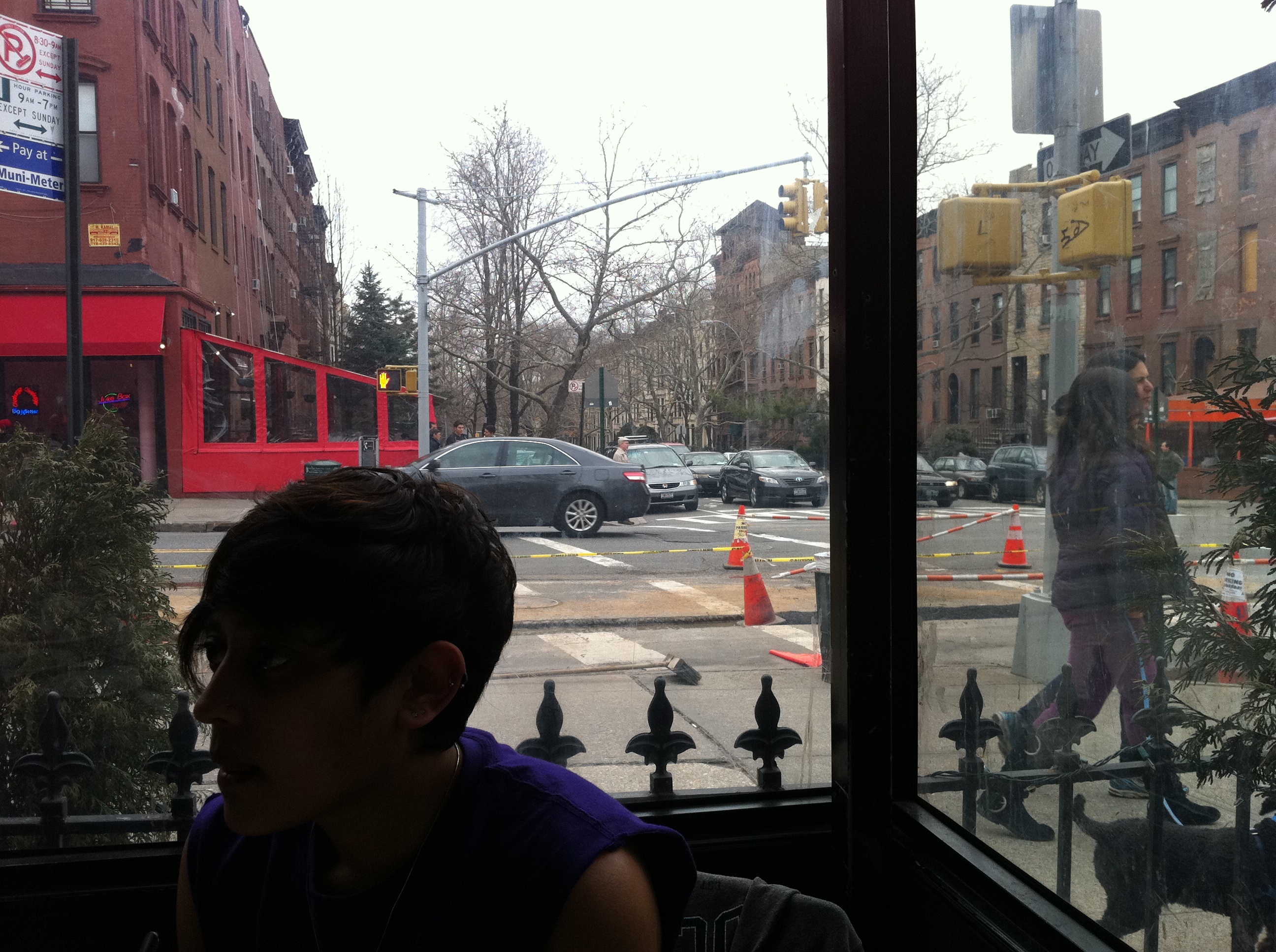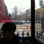 Saturday morning, after a late night of grilling, poker playing, and a backyard bonfire, my roomie Nick suggested that it was time for brunch.  Fayaz was out of town to Miami on “spring break” and Meg was stuck in Midtown editing an article for the law journal, but a few guests had spend the night – one visitor from Maryland and two NYC friends who decided not to brave the 4:30 a.m. subway ride home from Park Slope — so we had a nice little crew.  After a bit of internet searching to decide where to go, we were out walking in the cool spring air to the Perch Cafe.