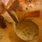 Combine everything but the cream cheese in a food processor and pulse until its a roughly homogeneous mixture, then add the cream cheese and process until everything is mixed together. Â You can do a few different things with this; I imagine it would be great as a sandwich spread, you could make pinwheels, you could probably thin this out with some milk and white wine to make a bitchin’Â pan sauce for something like roasted chicken, or you could just spread it on same fancy crackers and top it with some thinly sliced capocollo. Â I chose the latter route, and it was well received by the Thanksgiving crowd.