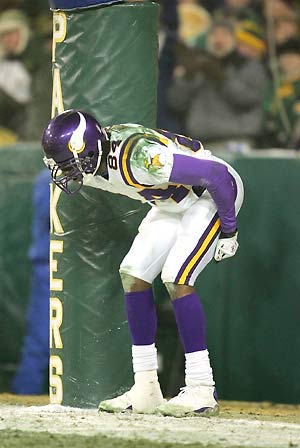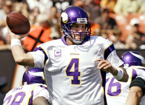 This has been a disappointing football season so far, as any Vikings fan will tell you. Not only are the Purple stinking it up, but they’re doing so in the most frustrating way possible. They have some pretty damn good players (Kevin Williams, Jared Allen, AP, Antoine Winfield, Percy Harvin) but they prove week after week to be entirely incapable of playing like professionals. What’s more, they aren’t even in full blown re-building mode, as evidenced by the fact that before they re-structured Adrian Peterson’s and Chad Greenway’s deal they were right at the salary cap. I can accept losing from a team that’s trying to get young or is trying to free up cap space to make some moves, but we’re doing neither and sucking royally.Â