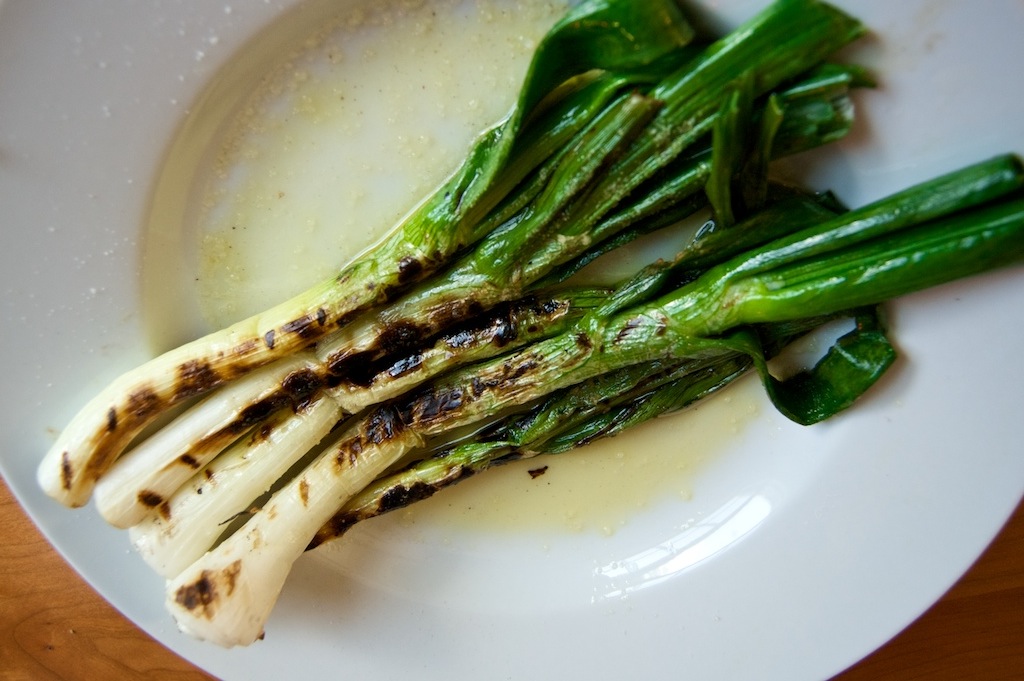 With an heirloom tomato, a red onion, and some mizuan (a lettuce with spiky dark green leaves that has surprisingly delicate texture, but a good crunch), it was time for meat to meet fire.