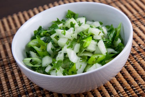 This salsa is spicy, smoky, sour, crunchy and so fresh. For salad greens, I went with swiss chard. For one, I bought some at the farmers market with no real plan for how to use it, so this was a pleasant surprise. Two, I think the assertive flavor and texture of chard, as compared to something like lettuce or spinach, better stands up to a meal with aggressive flavors like chipotle grilled chicken and lots of salsa. So rinse and cut your chard (removing most of the stem), add a nice heap of salsa, top with sliced chicken and half of a sliced avocado, and sprinkle with crumbled queso fresco.